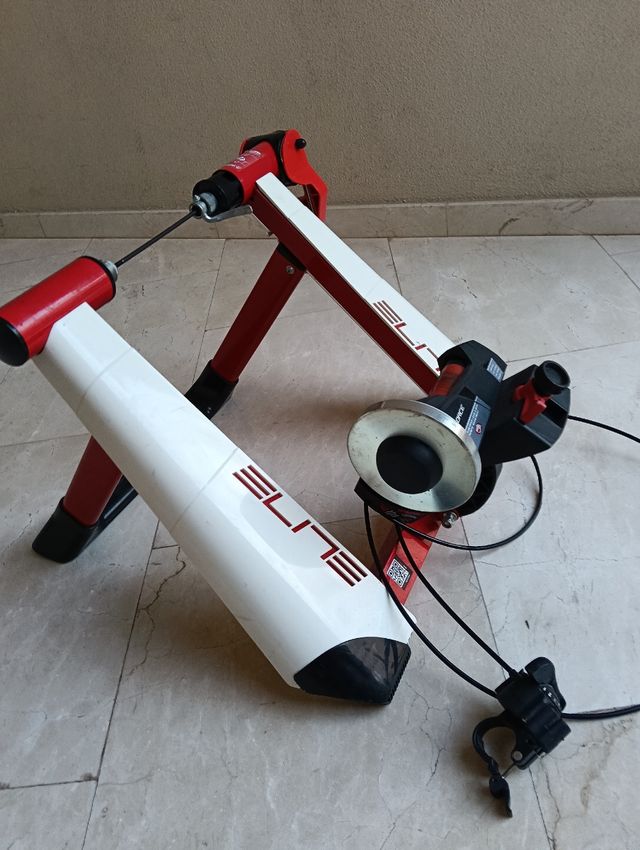 Detalles del productoRodillo de entrenamiento para bicicletas de la marca Elite. Ideal para mantener la forma física en casa.