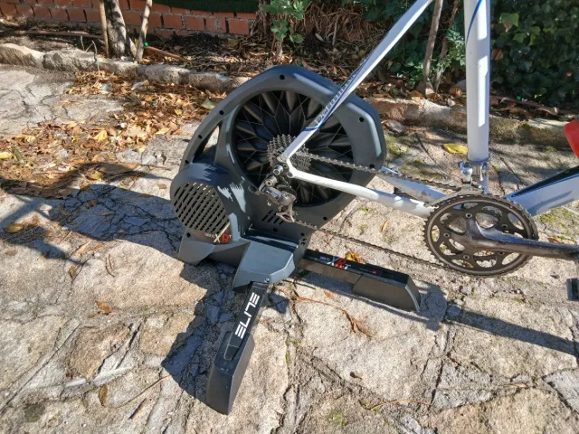 Detalles del productoRodillo de entrenamiento para bicicletas de la marca Elite. Permite simular el pedaleo en interiores.