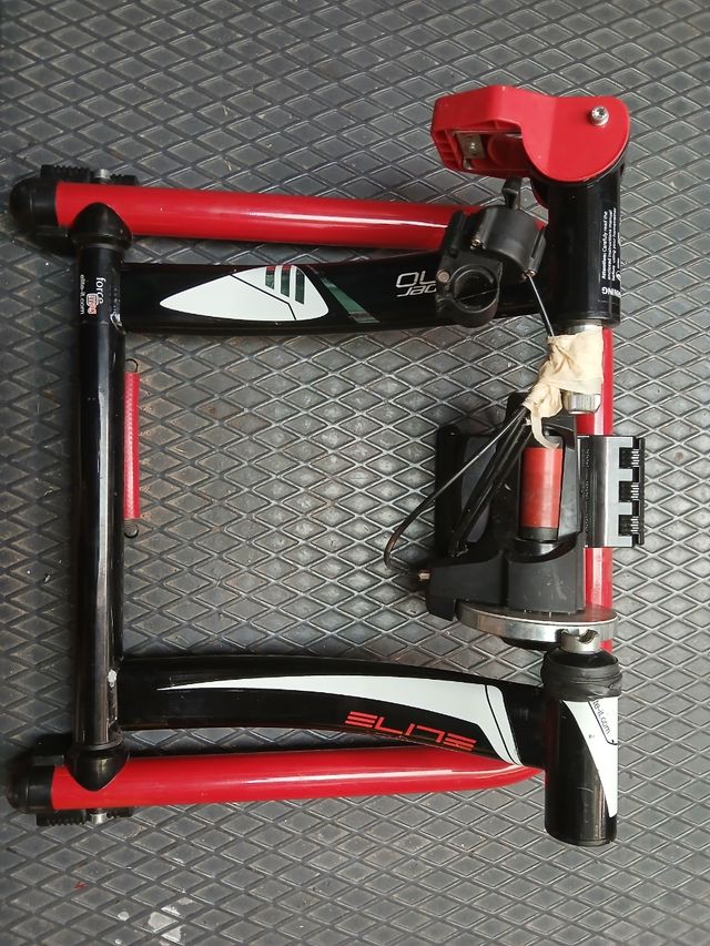 Rodillo de entrenamiento Elite Qubo, en buen estado. Ideal para entrenar en casa. - Marca: Elite - Modelo: Qubo - Color: Rojo y negro - Incluye rodillo y soporte para bicicleta.