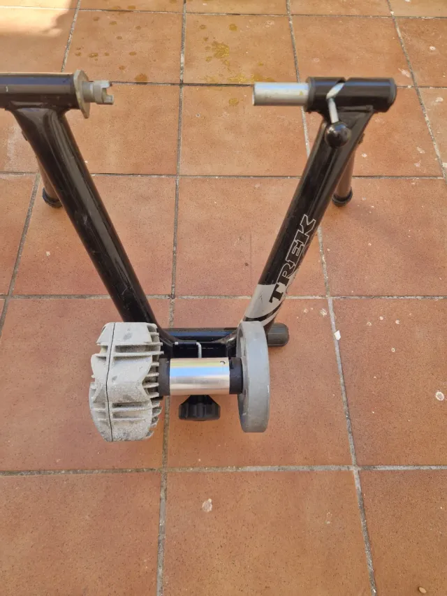Rodillo de entrenamiento para bicicleta de la marca Trek. Permite ejercitarse en casa con tu propia bicicleta. - Estructura metálica. - Rodillo de resistencia.