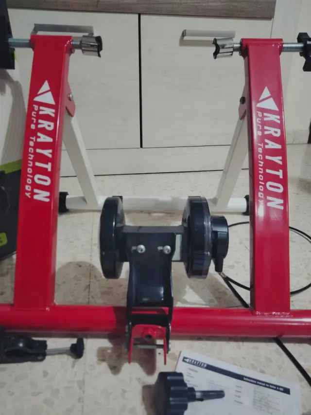 Rodillo de entrenamiento Krayton con diseño en color rojo. - Estructura metálica. - Ruedas de entrenamiento. - Incluye manual.