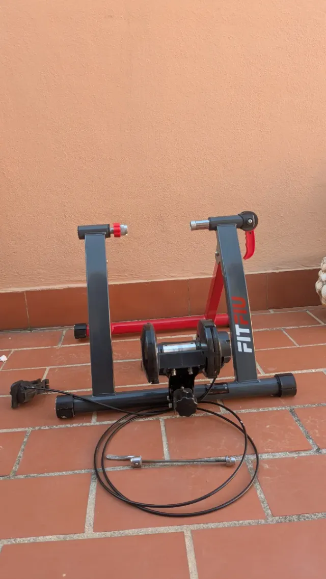 Detalles del productoRodillo de entrenamiento para bicicleta de la marca FitFiu. Muy cuidado, en perfecto estado. Color gris y rojo.