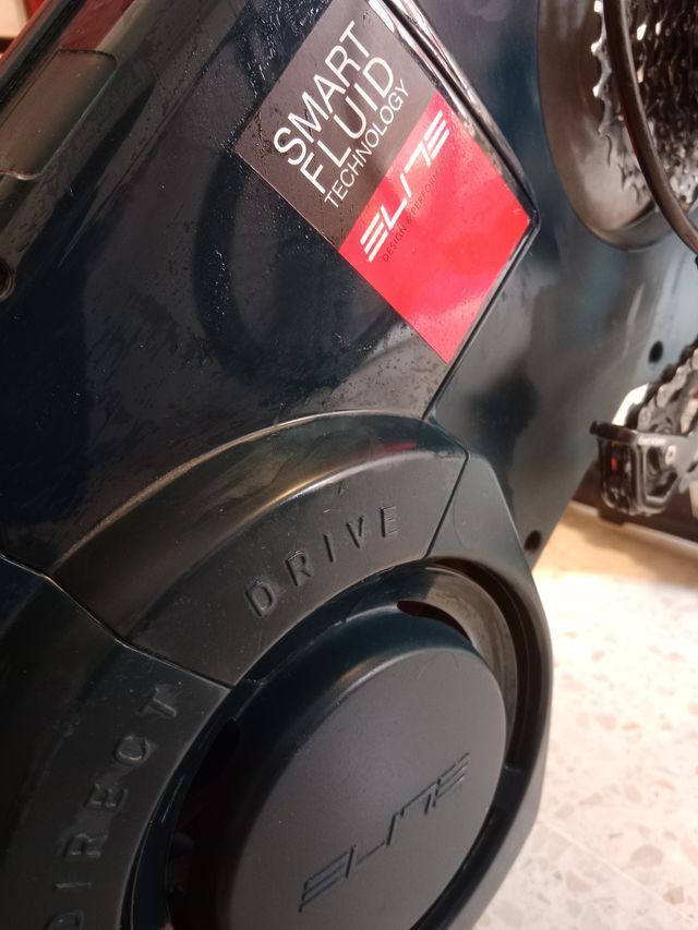 Detalles del productoRodillo de entrenamiento inteligente Elite Turno con tecnología Smart Fluid.
