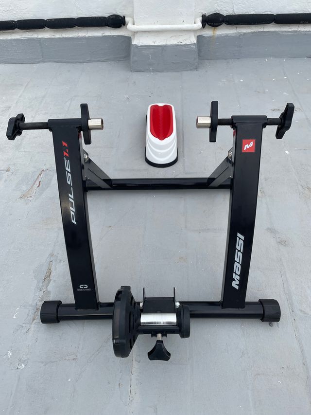 Rodillo de entrenamiento para bicicleta Massi Pulse 1.1. - Estructura metálica negra. - Incluye soporte para rueda delantera.