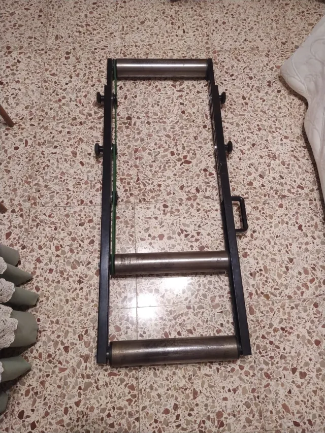 Rodillo de entrenamiento para bicicletas, tipo rulos. Ideal para mantener la forma física en casa. - Estructura metálica. - Rodillos de acero inoxidable.