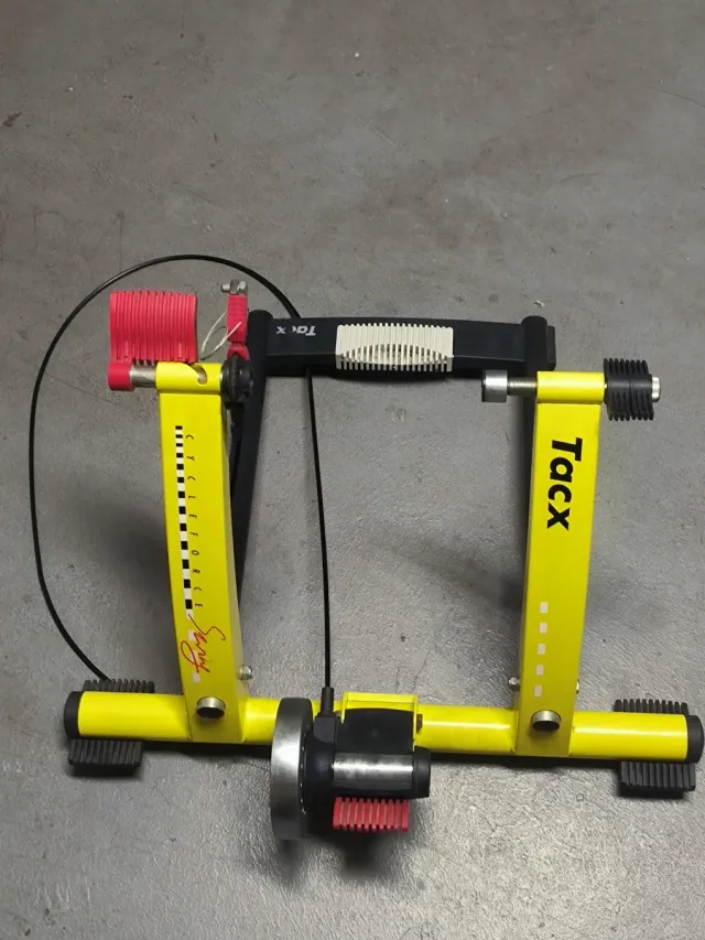 Rodillo de entrenamiento para bicicletas de la marca Tacx. - Estructura de color amarillo. - Incluye resistencia.