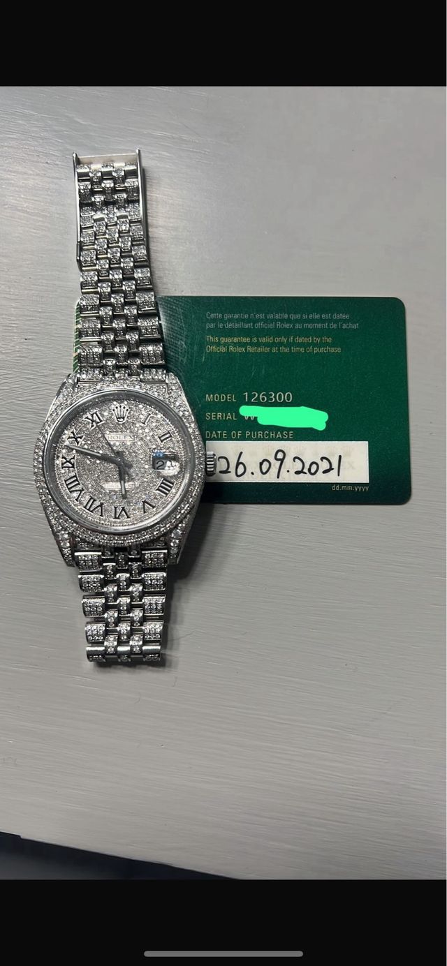 Detalles del productoReloj Rolex Datejust modelo 126300 con incrustaciones de diamantes. Un accesorio elegante y llamativo.
