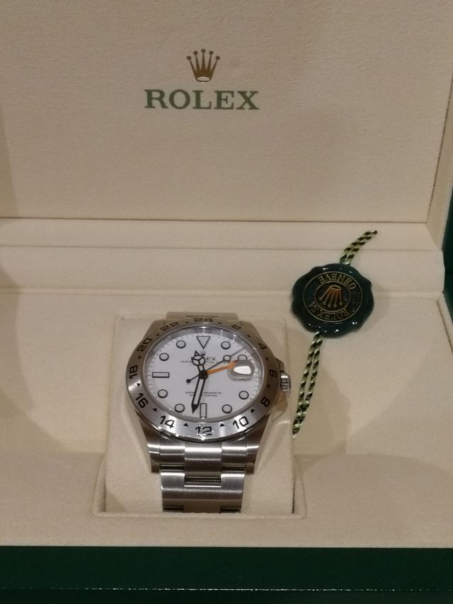 Detalles del productoRolex Explorer II 226570 comprado en septiembre de 2023 con tarjeta y factura de compra,caja, tiene alguna marca de uso como se ve en las fotos, no cambio ni envio