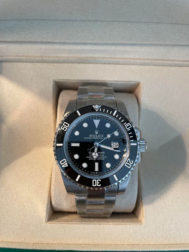 Reloj Rolex Submariner con esfera negra y bisel cerámico.