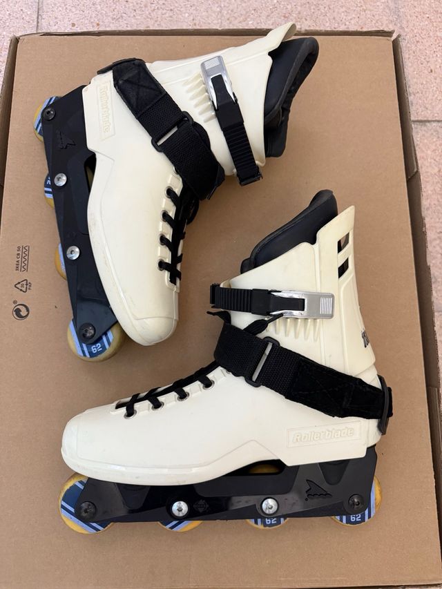 Detalles del productoPatines Rollerblade Trooper Chris Edwards de los años 90, en color blanco, en muy buen estado, casi sin uso. Ruedas originales y straps a 45 grados también originales. Rasísimos de ver en este estado, prácticamente sin patinar. Son parte de mi coleccion, los vendo porque tengo otros iguales. OJO, son unos patines de hace 20 años y aunque estén prácticamente nuevos puede ser que los plásticos, las ruedas, los botines, etc. no mantengan la resistencia original. Se venden como objeto de colección, si se patinan, es bajo la responsabilidad del comprador.
