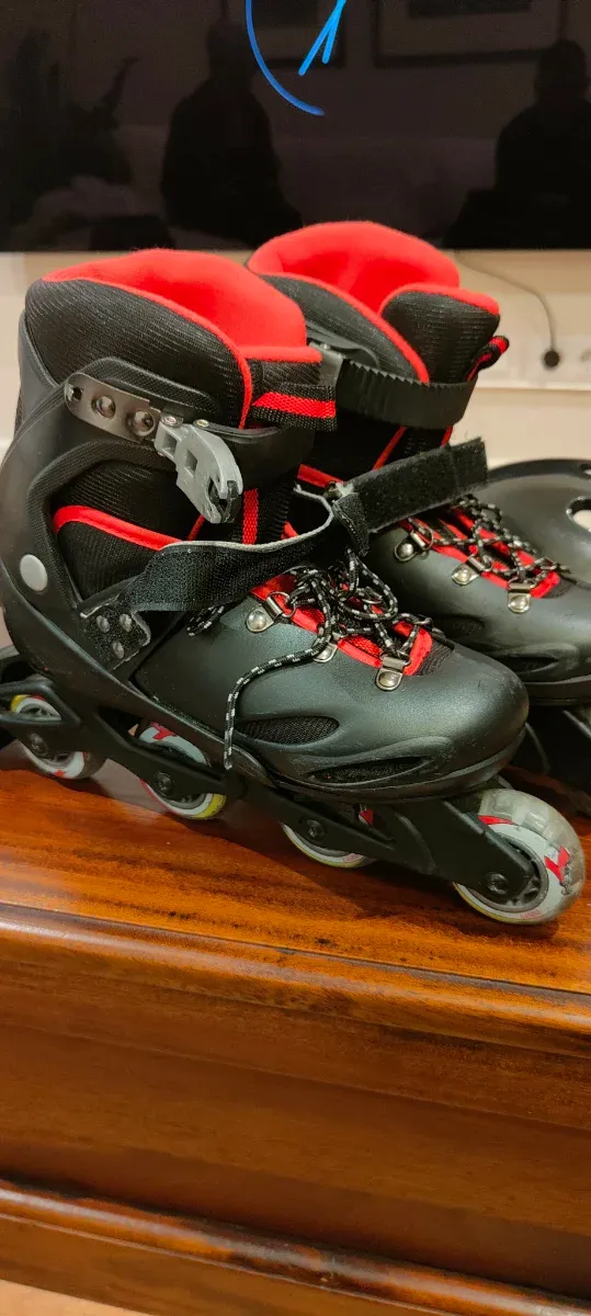 Detalles del productoSet de rollers (patines en línea) con ajuste de talla, guantes protección, rodilleras, coderas, casco, bolsa.