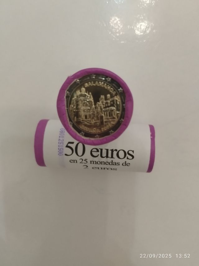 Detalles del productoRollo de 25 monedas conmemorativas de 2 euros de España, año 2025, con la temática de Salamanca.