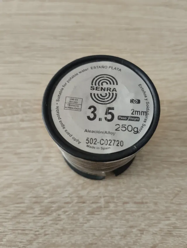 Rollo de estaño para soldar de 2mm de diámetro y 250g de peso. - Apto para agua potable. - Aleación de estaño y plata. - Fabricado en España.