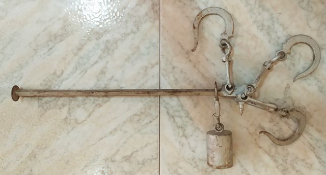 Antigua báscula romana, balanza. Pesa desde 25 a 115 kilos. Mide 60 cm de larga.