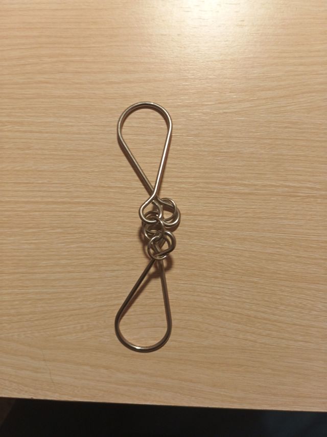 Este es un rompecabezas de metal con un diseño intrincado. Ideal para poner a prueba tu ingenio. - Fabricado en metal. - Diseño de bucles entrelazados.