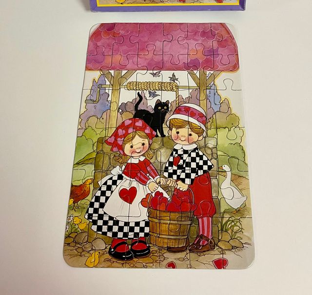 Diseño encantador con dos niños junto a un pozo y un gato negro, estilo clásico de los años 80-90.