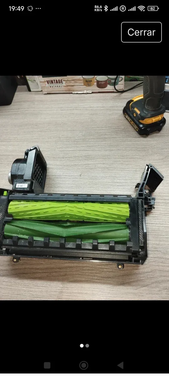 Cepillo principal para robot aspirador Roomba. Diseñado para una limpieza eficiente. - Rodillos de goma dobles. - Color verde y negro.