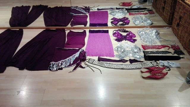Detalles del productoVarias prendas de ropa de danza nuevas a estrenar para talla 38 aprox: cinturón elástico violeta de lentejuelas y flecos 15€, mariposas 15 €, guantes de crochet y cristal 10