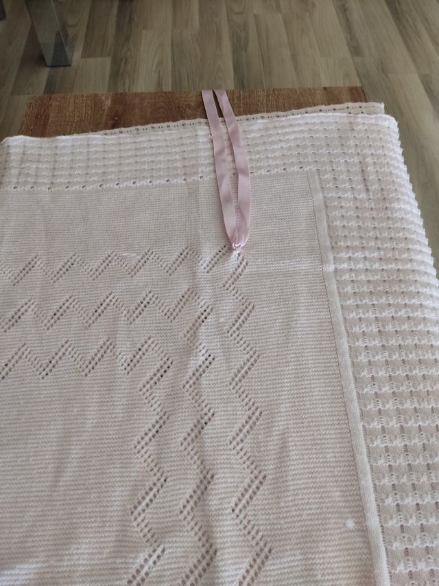 Detalles del productoPreciosa colección para tu bebé. Incluye dos mantas en perfecto estado: varias toquillas de punto rosa suave y delicadas, otras blancas con diseño calado.