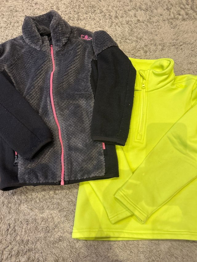 Detalles del productoConjunto de ropa de nieve CMP para niños, talla 116. Incluye una chaqueta gris con detalles rosas y una térmica con forro polar interior. precio del pack, pregutar si interesa por separado.