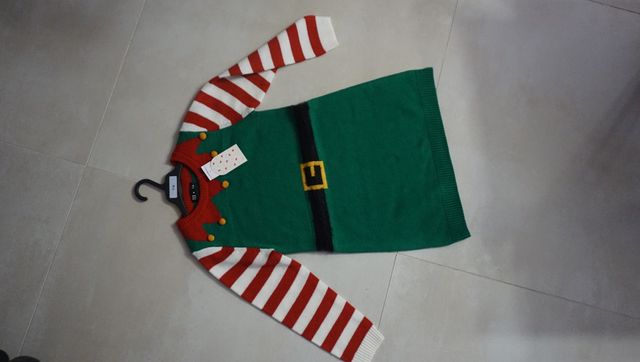 - Vestido verde estilo elfo con mangas a rayas rojas y blancas. Talla 4-5 y 7-8 años Nuevo