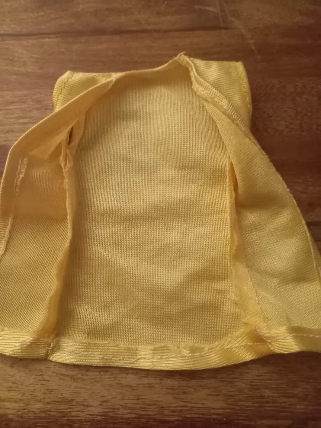 SOLO COREOS. 5. Ropa de muñecas para Barbie o similar, segunda mano, puede presentar taras. Chaleco de vestir para muñecas Barbie. - Color amarillo. - Tejido satinado.