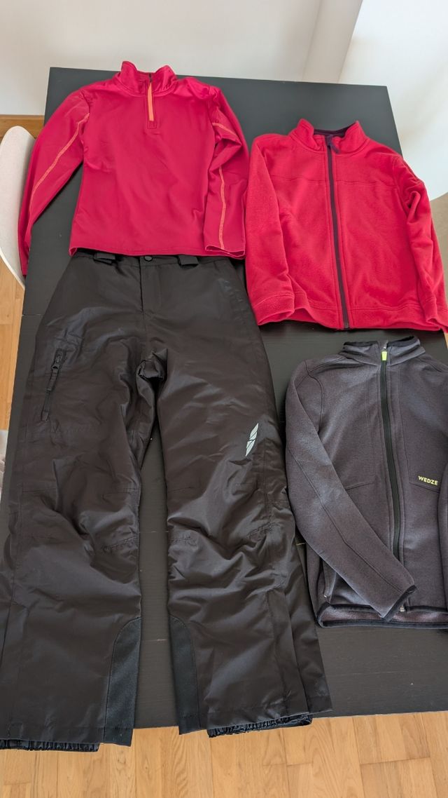 Detalles del productoConjunto ropa nieve para niña de 8 a 10 años. Incluye un pantalón negro, dos forros polares y una camiseta térmica. Las prendas están en perfecto estado y son ideales para la temporada de invierno.