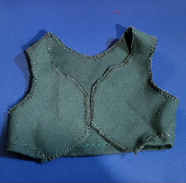 Conjunto de ropa para muñecos de aproximadamente 45 cm. - Chaleco de tela verde oscuro. - Costuras decorativas en contraste.