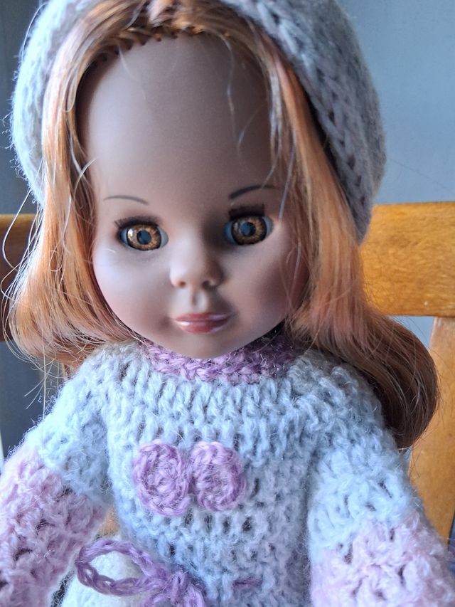 Detalles del productoConjunto de ropa tejido a mano para muñecas Nancy, Kika y otras de tamaño similar. El conjunto incluye un vestido y un gorro.
