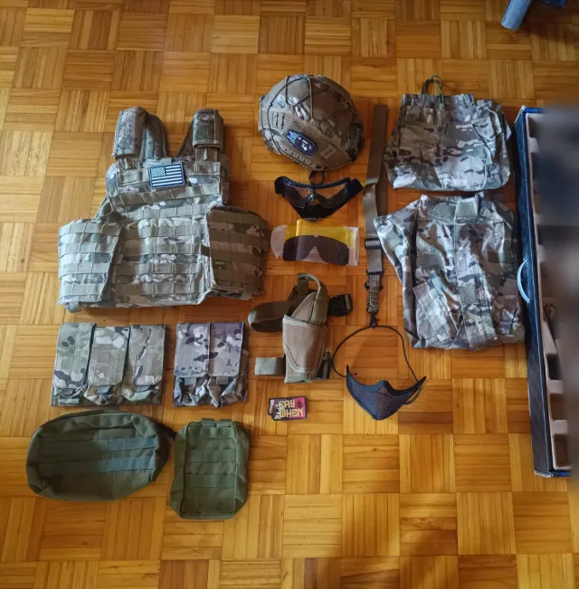 Conjunto de equipación de camuflaje para airsoft. Lo k se ve en la foto. 2 partidas tiene No negociable No vendo sueltos