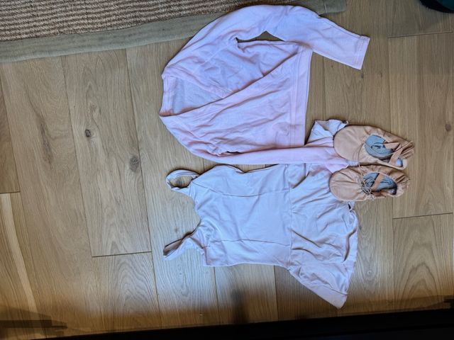 Detalles del productoConjunto de ropa y zapatillas de ballet en color rosa.