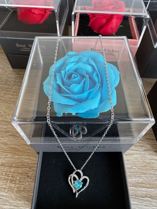 Rosa preservada con collar corazón azul