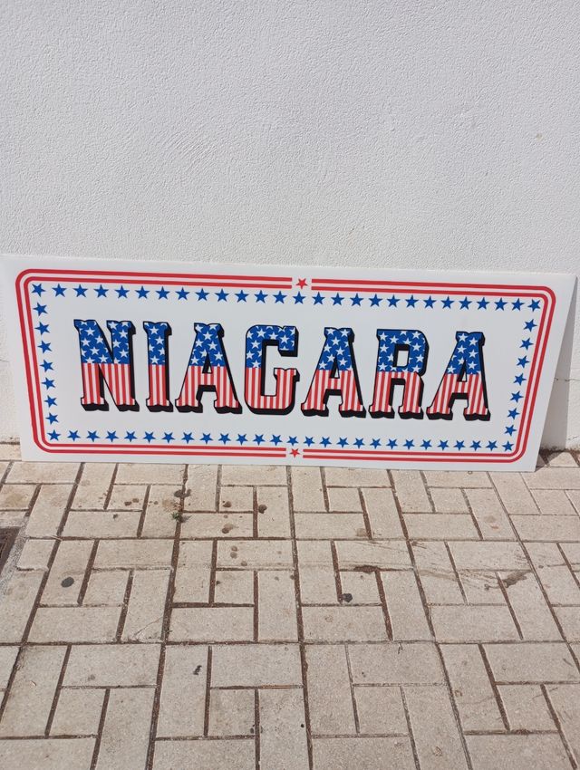 Detalles del productoRótulo decorativo con el nombre Niágara, inspirado en las máquinas recreativas de los años 80 y 90.