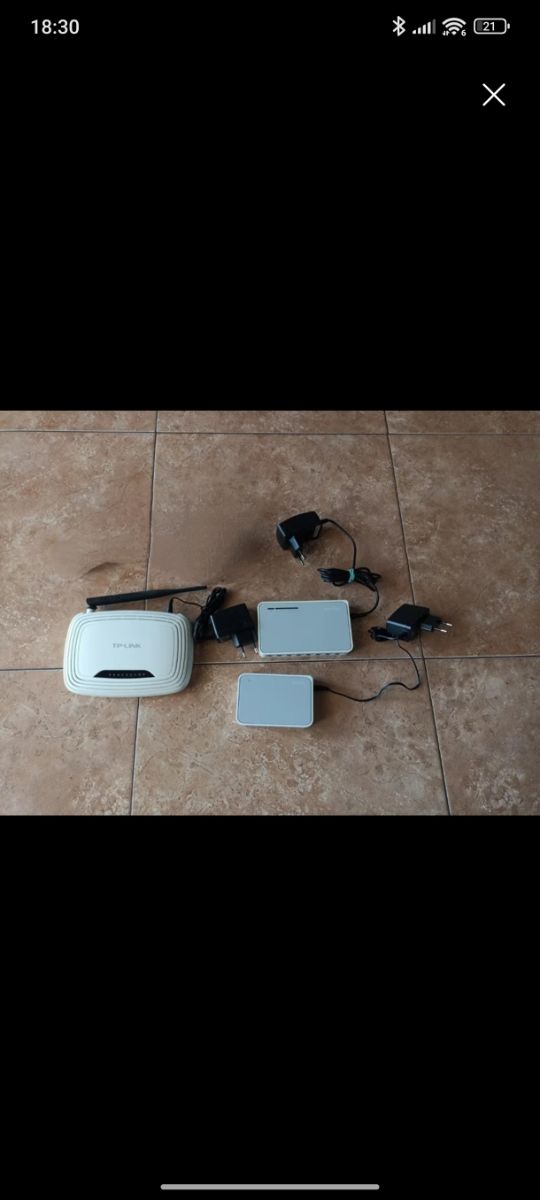 Detalles del productoSe vende lote de dispositivos TP-LINK en buen estado. Incluye un router inalámbrico y dos switches de red. Son de color blanco y gris claro, y se encuentran en perfectas condiciones estéticas. - Router inalámbrico TP-LINK. -TL-WR740N+ 2 switches TL sf 105d y Tl sf 108d TP-LINK