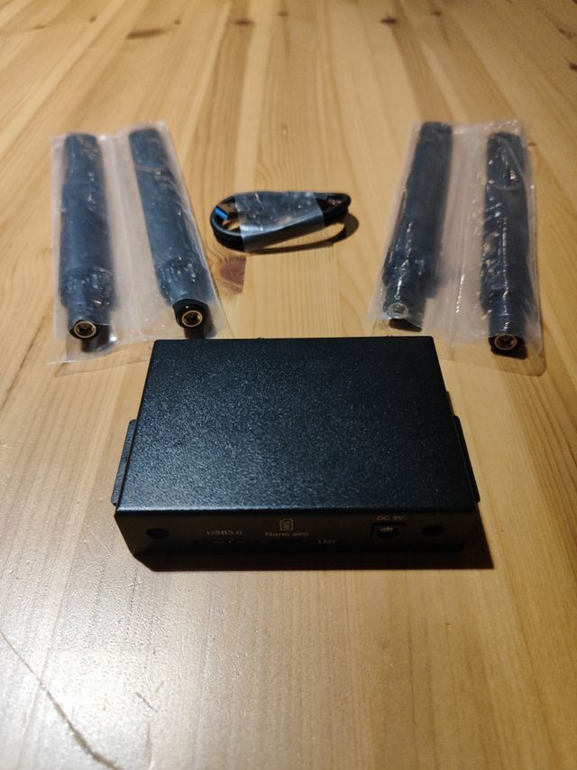 Router 4G LTE con ranura para tarjeta Nanosim y dos antenas externas. - Conexión USB 3.0. - Puerto de alimentación DC 5V. - Indicador LED.