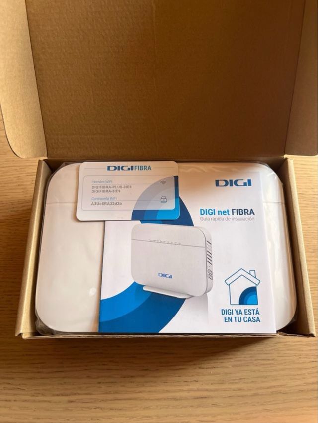 Router Wi-Fi 5G de Digi, modelo DIGI net FIBRA. Viene con la información de red preconfigurada. - Guía rápida de instalación incluida - Todos sus cables originales