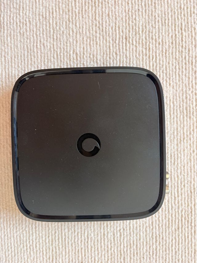 Router de Vodafone en color negro. Diseño moderno y compacto. - Acabado mate. - Logo de la marca en relieve.