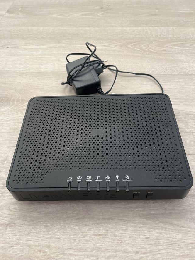 Router inalámbrico de color negro. - Diseño con rejilla superior. - Indicadores LED en la parte frontal. - Incluye adaptador de corriente.