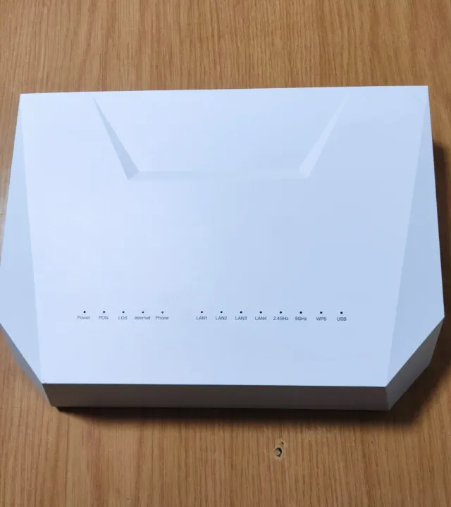 Indicadores: Power, PON, LOS, Internet, Phone, LAN1, LAN2, LAN3, LAN4, 2.4GHz, 5GHz, WPS, USB. Diseño moderno, Nuevo precintado en su caja