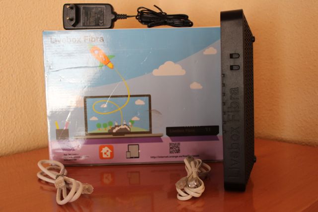 Detalles del productoRouter Wifi Livebox para fibra óptica. Con sus manuales, caja, adaptador de corriente y cable ADSL e Internet RJ45 CAT 5E.