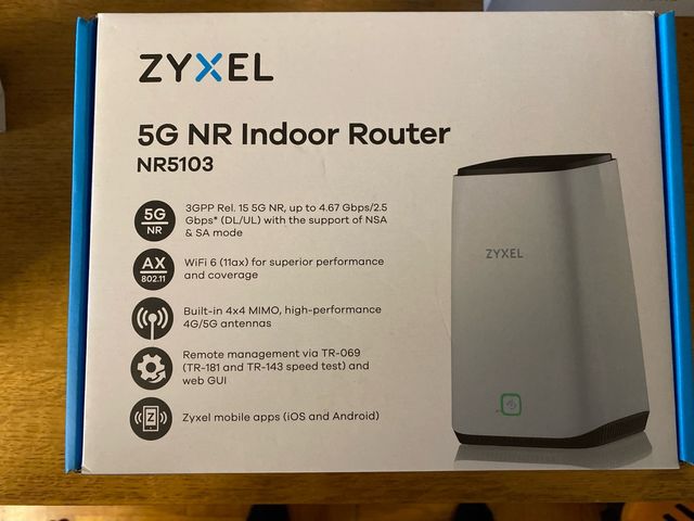 Detalles del productoRouter Zyxel 5G NR NR5103 para interiores.