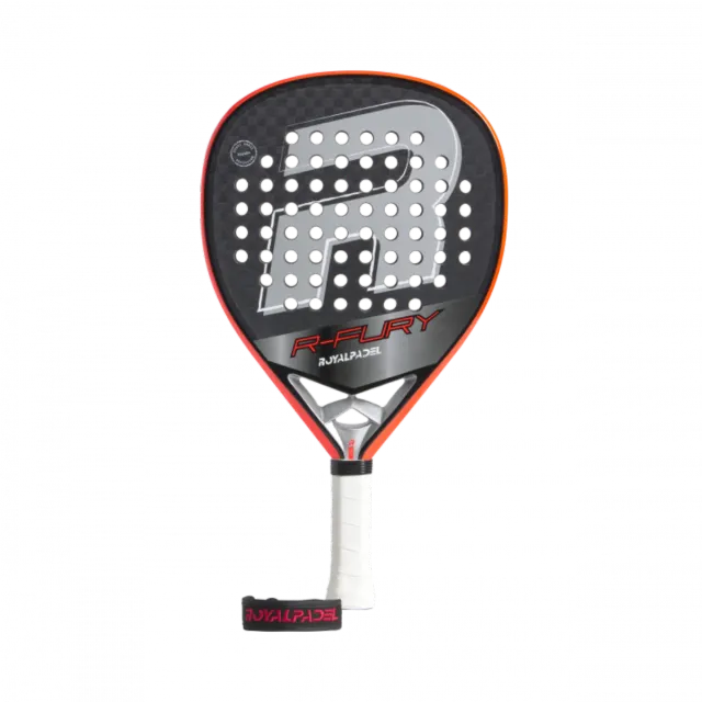 Pala de pádel Royal Padel Fury. - Diseño con acabado en carbono. - Marco con detalles en naranja y gris. - Empuñadura blanca.