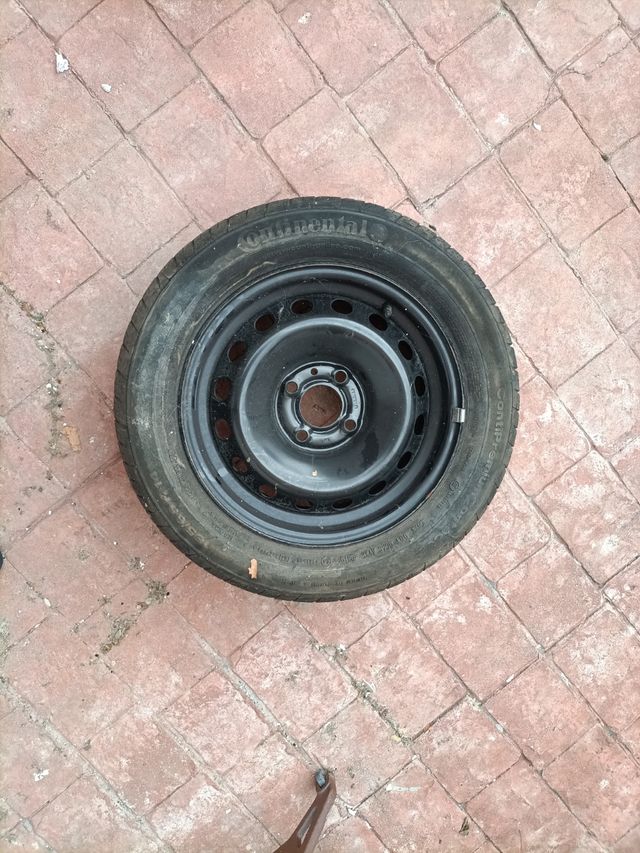 Vendo rueda de coche en buen estado, sin apenas uso. - Llanta de 14 pulgadas. - Neumático 165/65 R14. - Marca Continental.