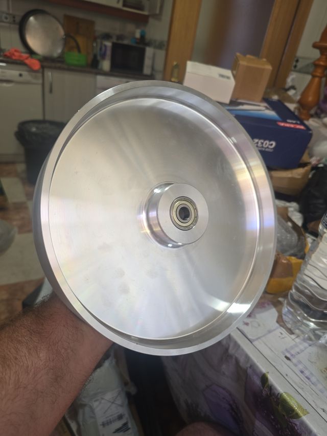 Preciosa rueda de aluminio pulido. Ideal para proyectos DIY o de restauración. - Fabricada en aluminio. - Incluye rodamiento central. - Acabado brillante.