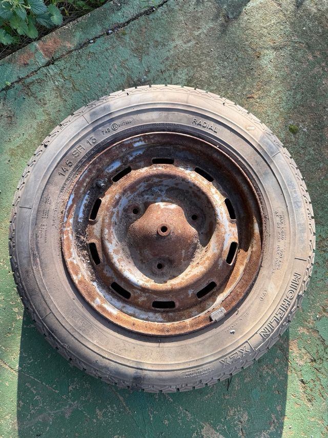 Rueda de renault 3 tornillos. Neumatico 13 pulgadas sin uso pero con tiempo. Lleva camara.