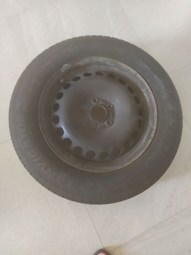 Rueda de coche completa, lista para usar. - Llanta de acero. - Neumático en buen estado.