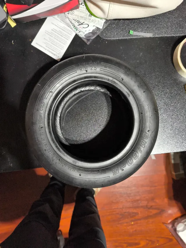 Rueda de repuesto para kart. - Medida: 80/60-5. - Material: Nylon. - Carga máxima: 40 kg (88 lbs). - Presión recomendada: 70 kPa (10 psi) en frío.