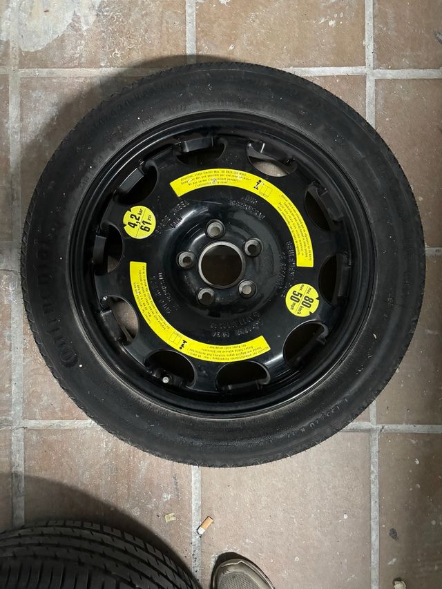 Rueda de repuesto para Mercedes W211. - Medida: 135/70 R17. - Presión recomendada: 4.2 bar (61 PSI). - Velocidad máxima: 80 km/h.