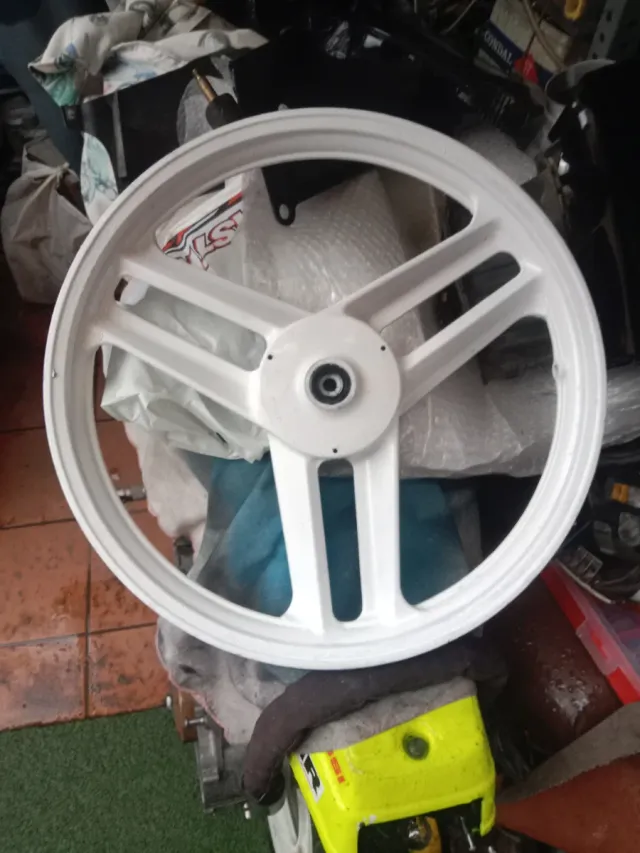 Rueda delantera para Honda Wallaroo PK50S. Llanta delantera de moto honda wallaro pk 50 - Color blanco. - Diseño de 3 radios.