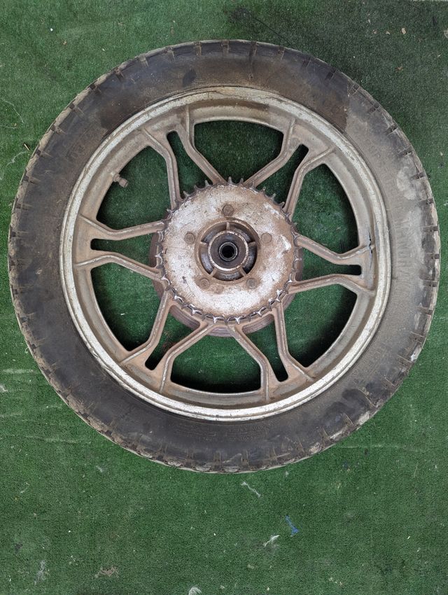 Incluye todo lo que de ve. Salvo la llanta el resto está en buen estado. Portacorona y goma 50€ Disco, pinza y bomba 50€
